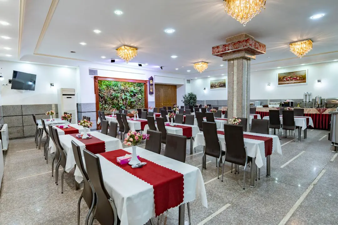 صبحانه به صورت ساده و سلف سرویس ارائه می شود (نان، پنیر، مربا، تخم مرغ، چای و آبمیوه)؛ برای شروع یک روز زیارتی کافی است.