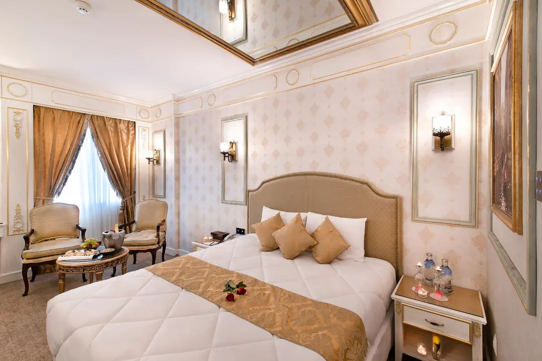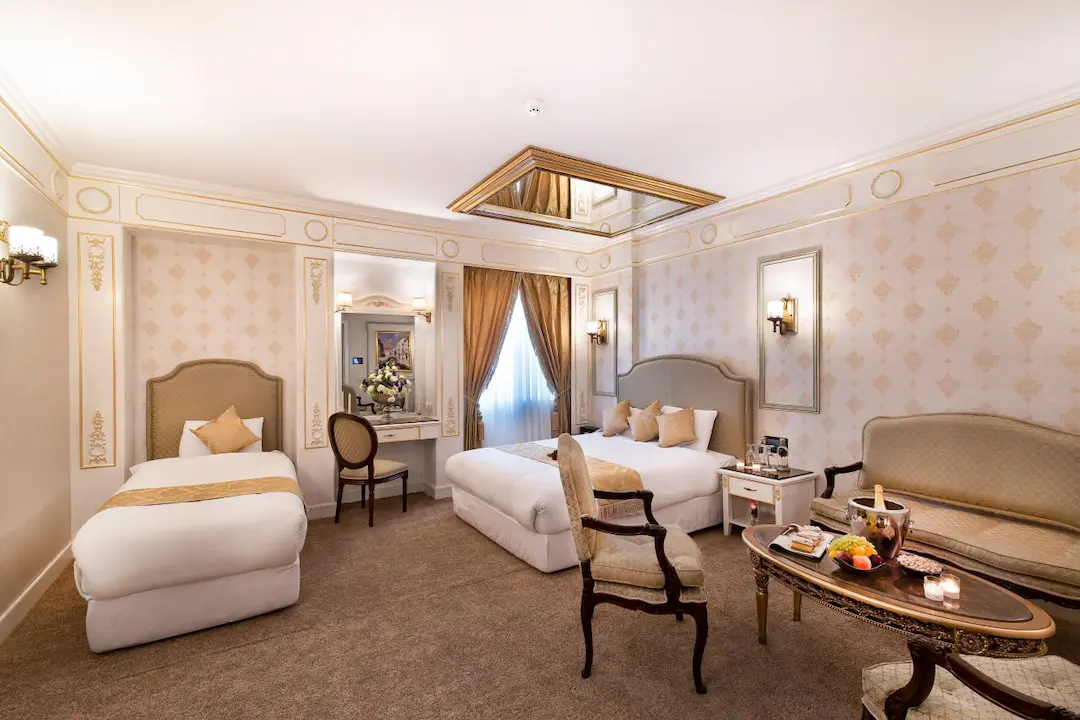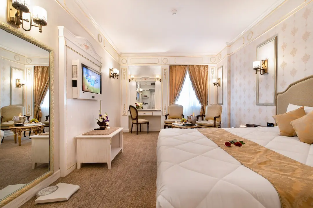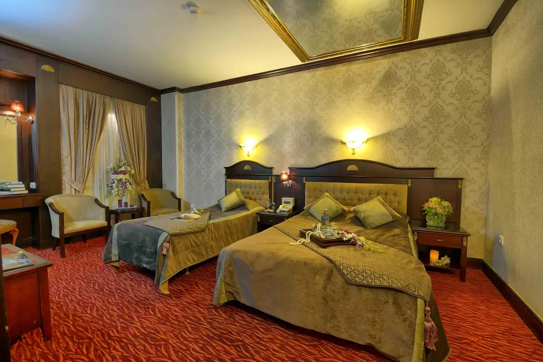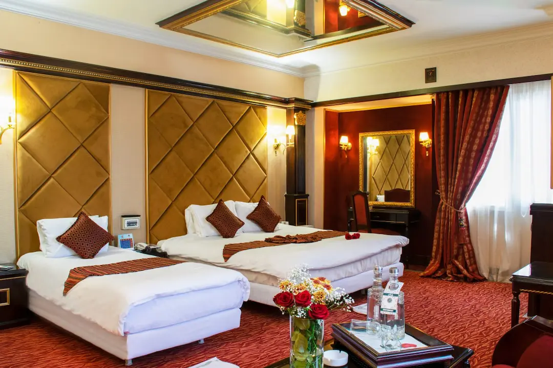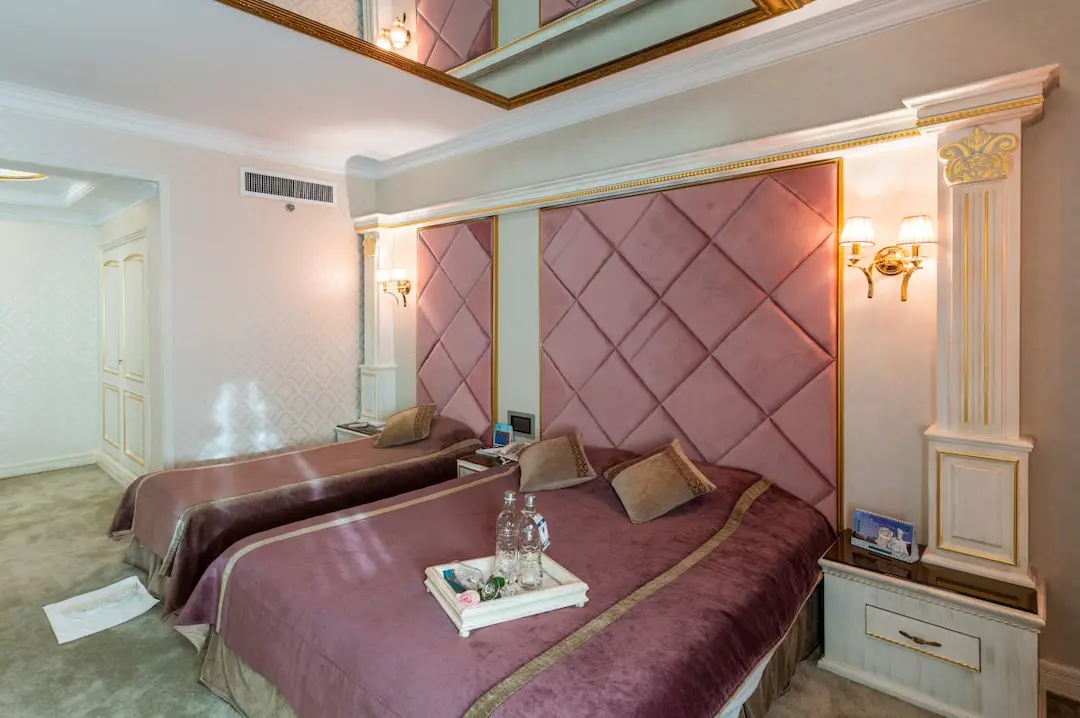 اتاقهای هتل قصر بین الملل هم اتاق معمولی داره و هم سوئیت. سوئیتها برای خانوادهها خیلی خوبه، چون یه فضای بزرگتر داره و راحتتر میتونید توش رفت و آمد کنید. همه اتاقها تلویزیون دارن و سیستم تهویه مطبوع هم دارن که تو گرمای مشهد خیلی لازمه. در مورد تمیزی اتاقها هم من تعریفش رو زیاد شنیدم. حالا ممکنه بپرسید قیمتها چطوریه؟ خب، قیمتها بستگی به فصل سفر و نوع اتاق داره. اما در مجموع، قیمتها نسبت به موقعیت مکانی هتل، خیلی مناسبه.