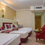رسیدیم به امکانات هتل آپارتمان گوهر. اینجا یه هتل لوکس با امکانات خیلی خاص نیست، اما همه چیزهایی که برای یه اقامت راحت و بیدغدغه نیاز دارید رو داره. یه اینترنت وایفای رایگان توی لابی داره که میتونید با دوستها و خانوادهتون در تماس باشید و عکسهای زیارتتون رو براشون بفرستید. آسانسور هم داره که رفتوآمد به طبقههای بالا راحت باشه. پارکینگش یه کم کوچیکه، اما معمولاً میشه یه جایی برای ماشین پیدا کرد. پذیرش هتل هم ۲۴ ساعته است، پس هر ساعتی از شبانهروز برسید، استقبالتون میکنن. هر روز هم اتاقها رو تمیز میکنن که همیشه یه جای مرتب و تمیز داشته باشید. یه کافیشاپ هم داره که میتونید یه چای یا قهوه بخورید و خستگی در کنید. برای کسایی هم که میخوان نماز بخونن، یه نمازخونه کوچیک و دنج داره. به نظر من، این امکانات برای یه سفر زیارتی کاملاً کافیه.