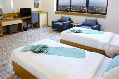 اتاق هاي هتل نوين پلاس معمولا حس يک فضاي تازه و تميز را منتقل مي کنند؛ از آن نوع اتاق هايي که با ورود به آن، بوي نوساز بودن و نظم محيط قابل تشخيص است. بنا به نوع اتاق، امکاناتي مثل سيستم تهويه مطبوع، ميز کار، يخچال، سرويس بهداشتي مدرن، نورپردازي ملايم و تخت خواب هايي با استاندارد مناسب ارائه مي شود. برخي اتاق ها چشم انداز بازتري دارند و براي مهماناني که صبح ها دوست دارند از نور طبيعي استفاده کنند، گزينه خوبي اند. سوئيت ها براي خانواده ها فضاي راحت تري دارند و معمولا بخش نشيمن مجزا و امکانات کامل تر ارائه مي کنند. در مجموع، هتل تلاش کرده ترکيبي از سادگي، نظم و راحتي را حفظ کند.