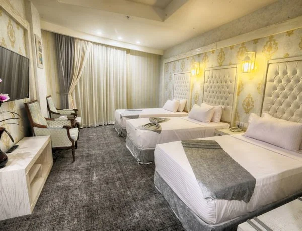 تنوع اتاقها توی هتل ضیافت الزهرا مشهد بد نیست. اتاق یه تخته داره، دو تخته داره، اتاقهای خانوادگی هم داره که اگه با خانواده اومدید، راحت باشید. همه اتاقها تلویزیون دارن، سیستم سرمایش و گرمایش دارن و سرویس بهداشتی و حموم هم که اختصاصیه. دکوراسیون اتاقها هم مرتب و تمیزه و حس خوبی به آدم میده. حالا دیگه بستگی داره به اینکه شما چند نفر هستید و چقدر فضا لازم دارید، میتونید انتخاب کنید کدوم اتاق براتون مناسبتره.